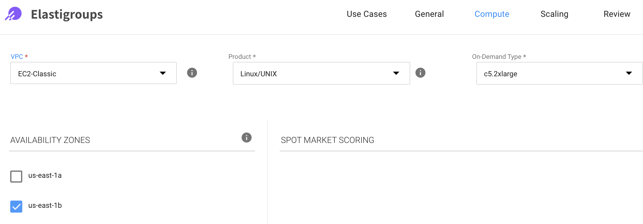 • Spot Types: Select the eligible instance types you wish to have in your Elastigroup. Select multiple instance types to increase the spot market scoring.