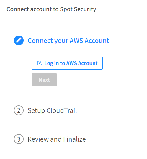 This procedure describes how to connect your AWS account to Spot Security.