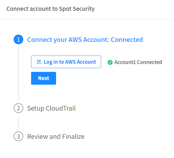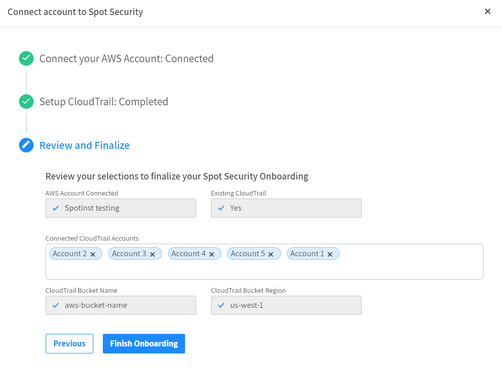 When this is complete, you can return to the Spot Security onboarding process to complete the remaining steps.