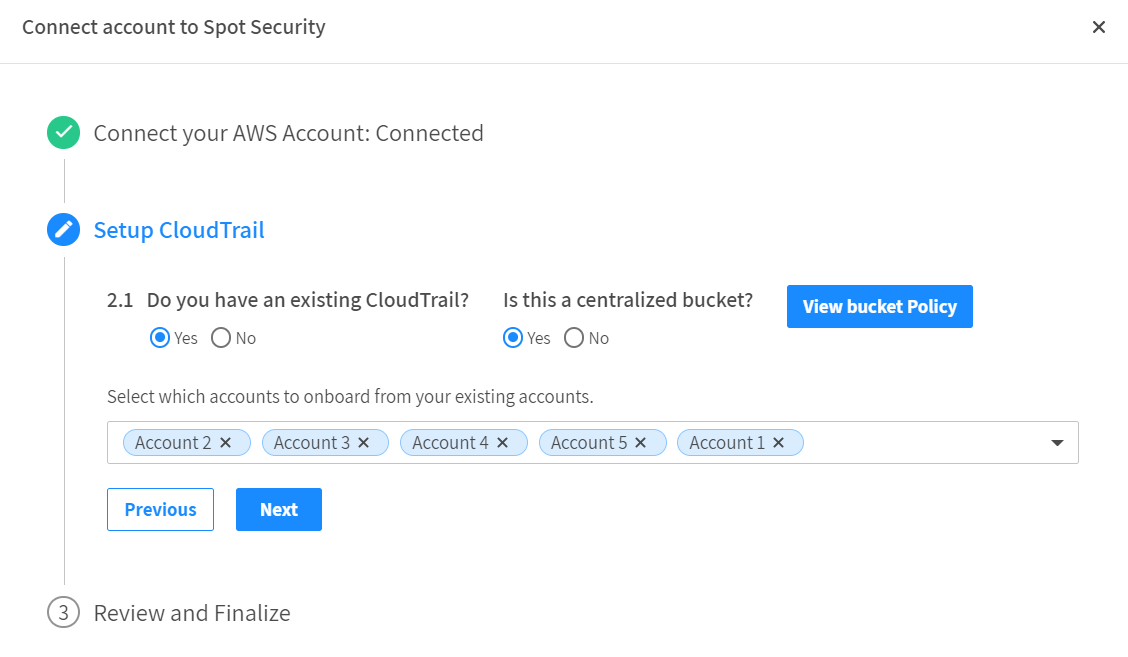 You need to connect a CloudTrail account to your Spot Security account. If you have an account, complete the following steps:
