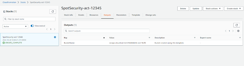 5. When the stack is created, you can see the stack that was created for Spot Security in the list of stacks.